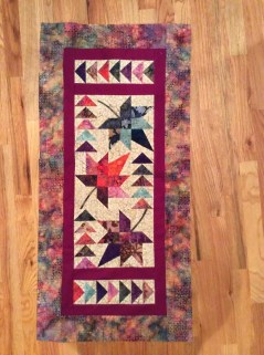 I couldn’t wait to make “Signs of Autumn” Table Runner made with www.studio180design.net Wing Clipper I and Corner Beam tools. I loved the fabrics, the colors were just falling out of my stash. There were the blues, the oranges, the purples… I found the border at after I made the center, and it was perfect incorporating all the colors.