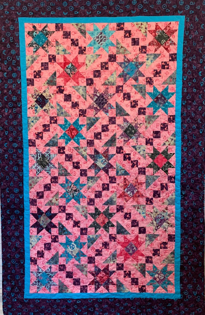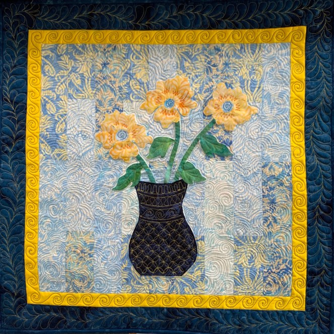 I love everything about quilting. I love the colors, the feel of the fabrics, the piecing, the quilting , and even putting on the binding! I free motion quilt using a Bernina 780, longarm quilt (free motion or ruler work), on a Prodigy , and hand quilt when I get a chance.