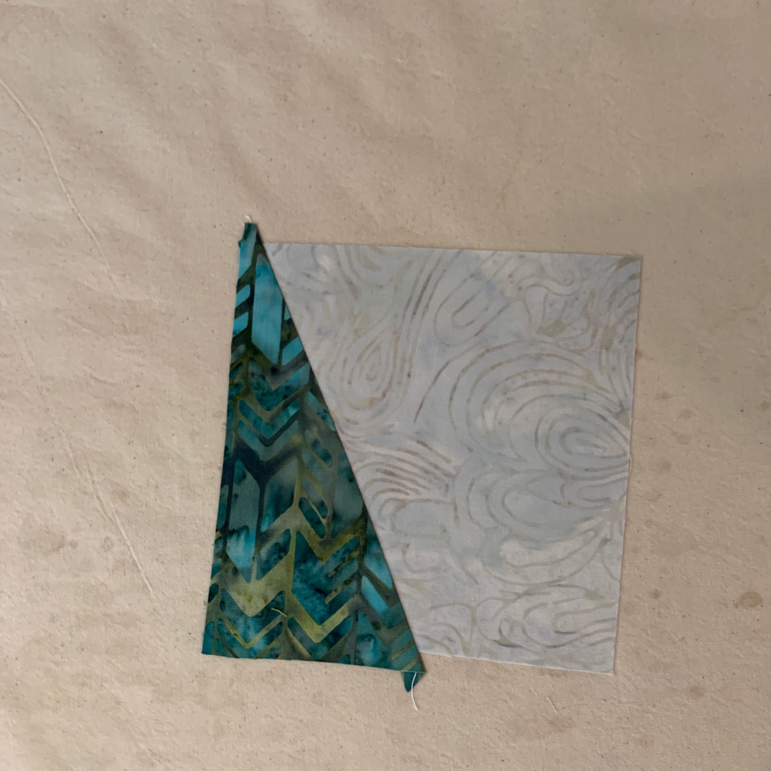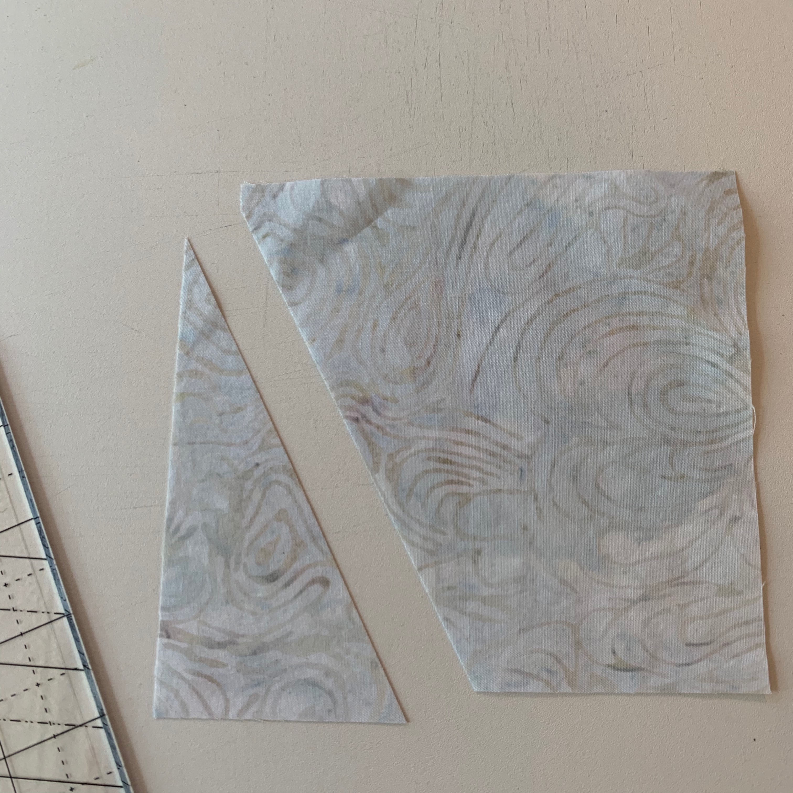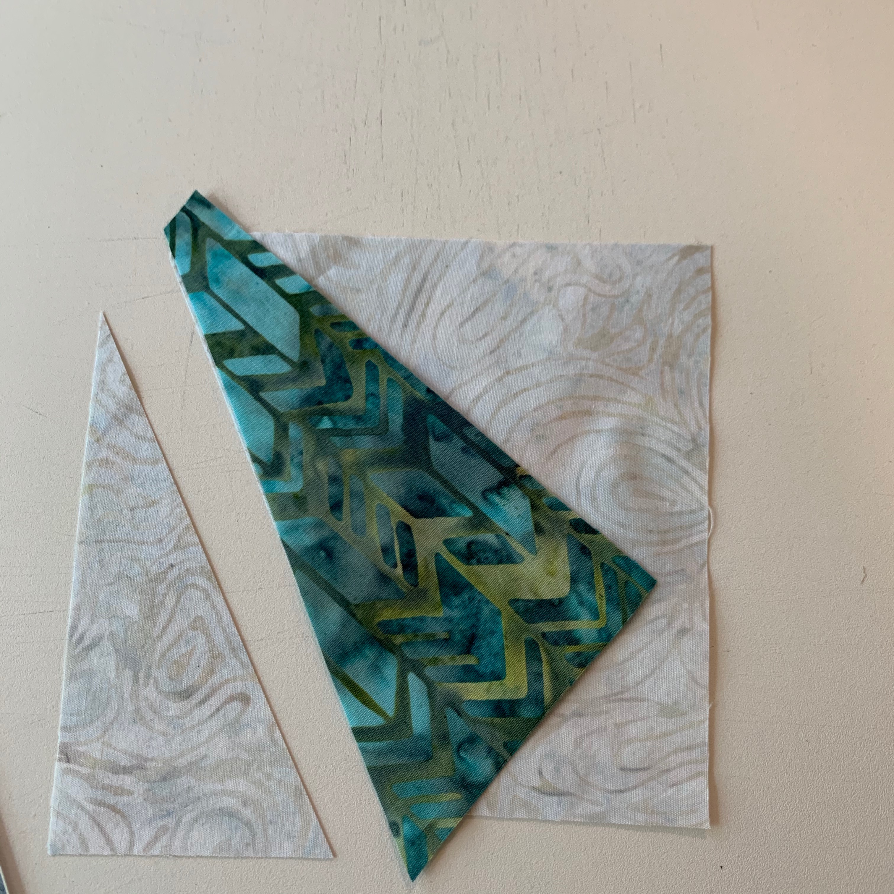 After your center block is done, you continue the process adding strips, trimming them to size, popping off the corner, and then replacing the corner with a dark triangle. I like to use the Tucker Trimmer for the squaring up process. You can chain piece too, which make the process much faster.