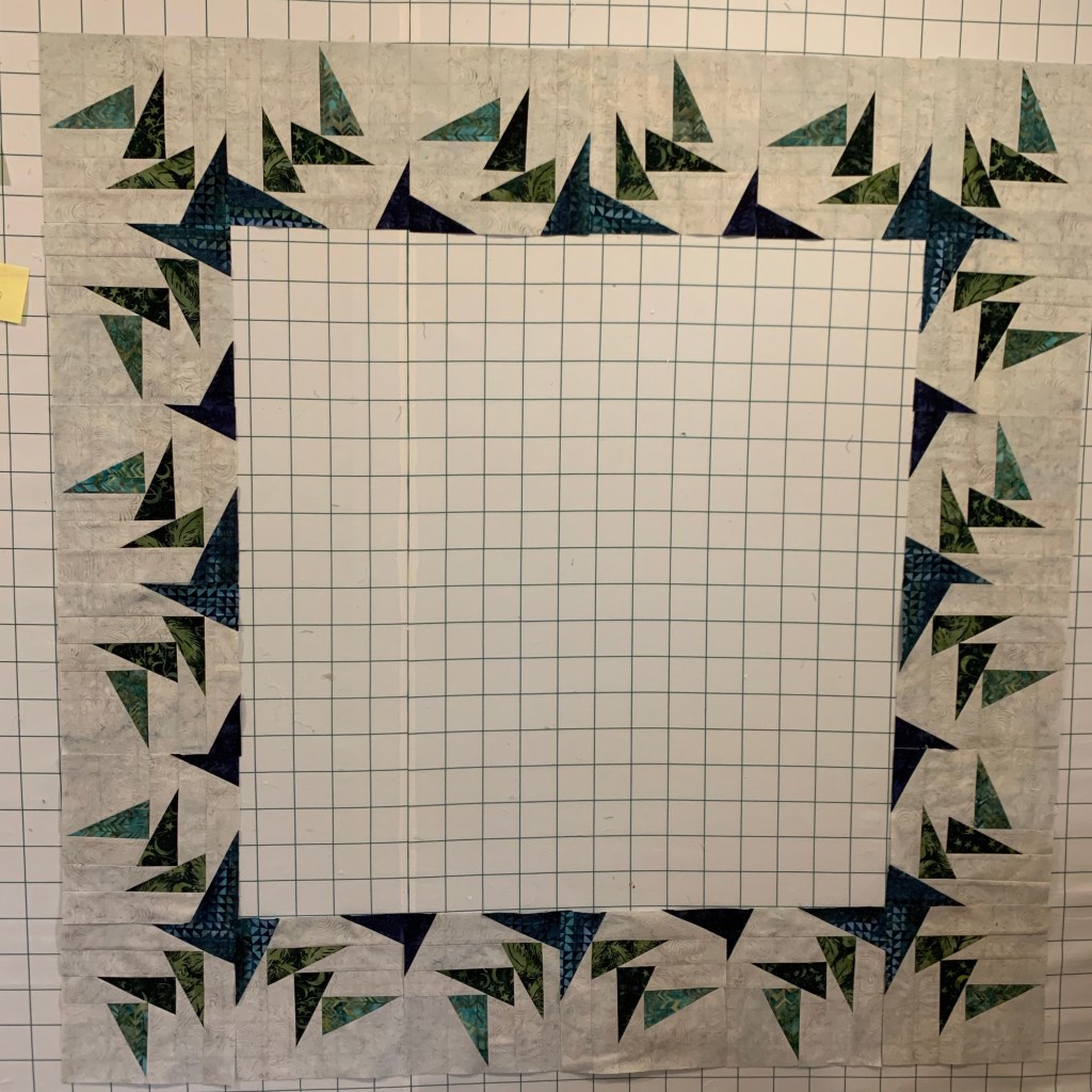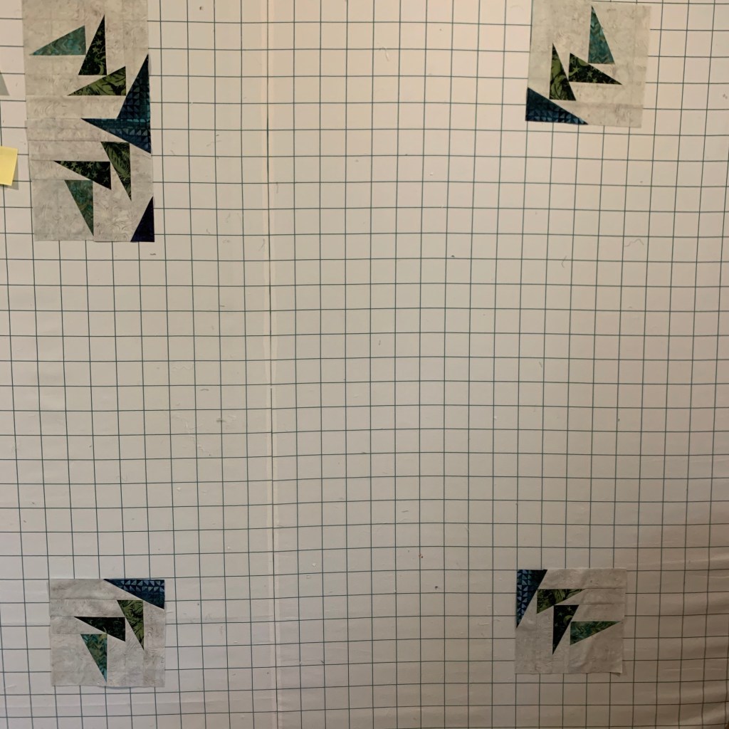 Starting with a center square which is Corner Popped, this quilt is built like a log cabin popping off corners and replacing them with the dark colored triangles… and could this fabric be any more perfect? I just love the touch of green in the background fabric.