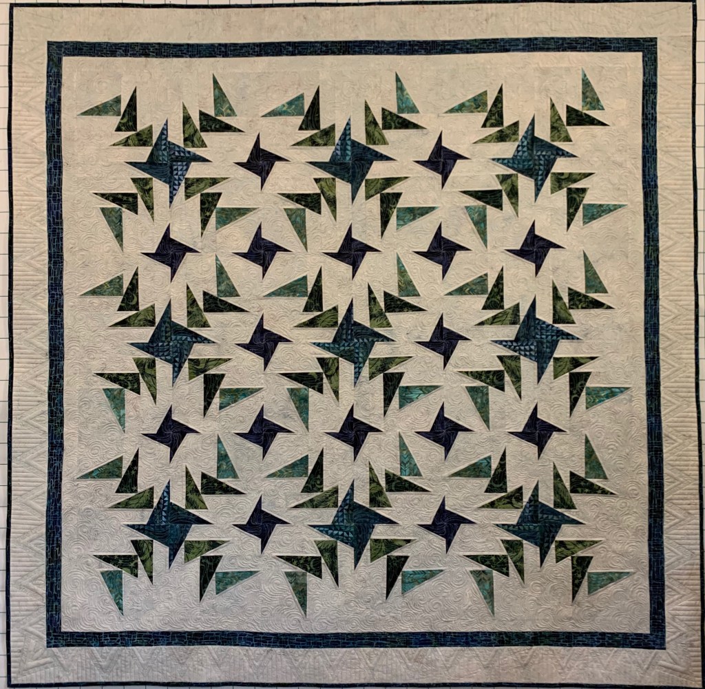 I just loved making this fun Tumbleweeds pattern by Sarah Furrer, for Studio 180 Design. What made it even yummier was Island Batik‘s River Valley fabrics designed by Kathy Engle for Deb Tucker. The beautiful greens and blues made me think of days spent canoeing on the Wacissa river here in Tallahassee, Florida. Sarah called the pattern Tumbleweeds because it has that feel of the blocks tumbling across the desert, but with the river fabric I refer to them “Rolling on a River” or maybe just River Rollin’. What do you think?