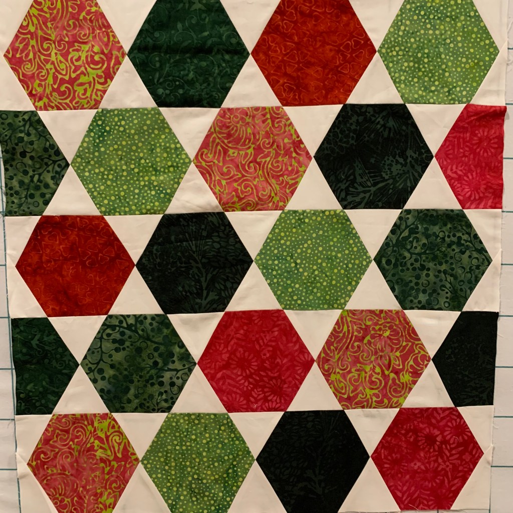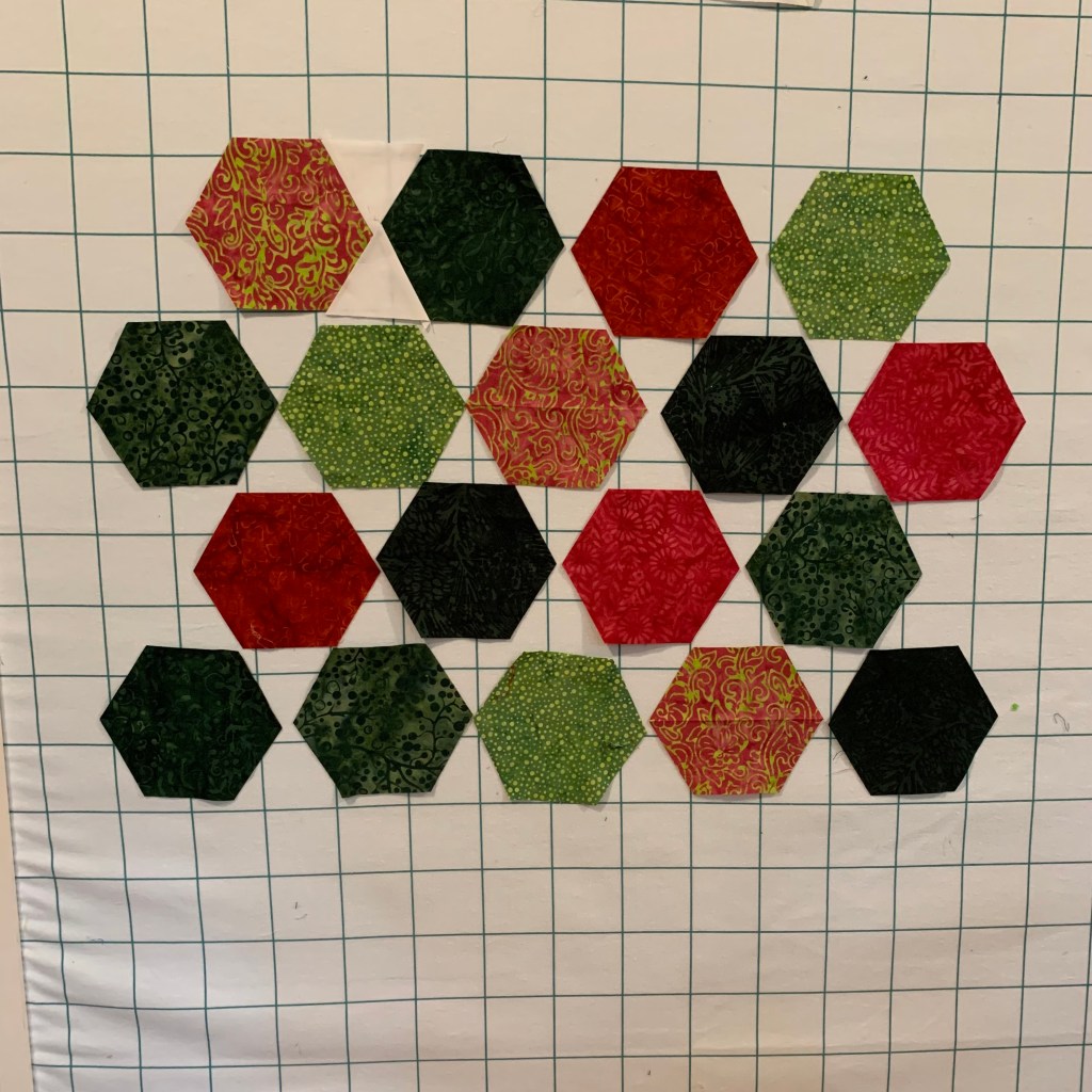I didn’t want to cut off my hexagons so I added a row and finished off the rows with half triangles.