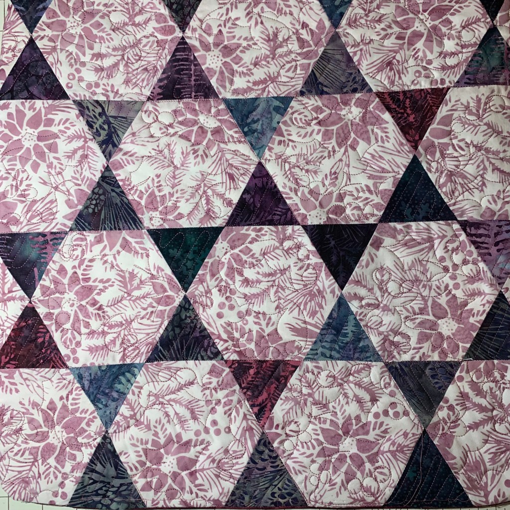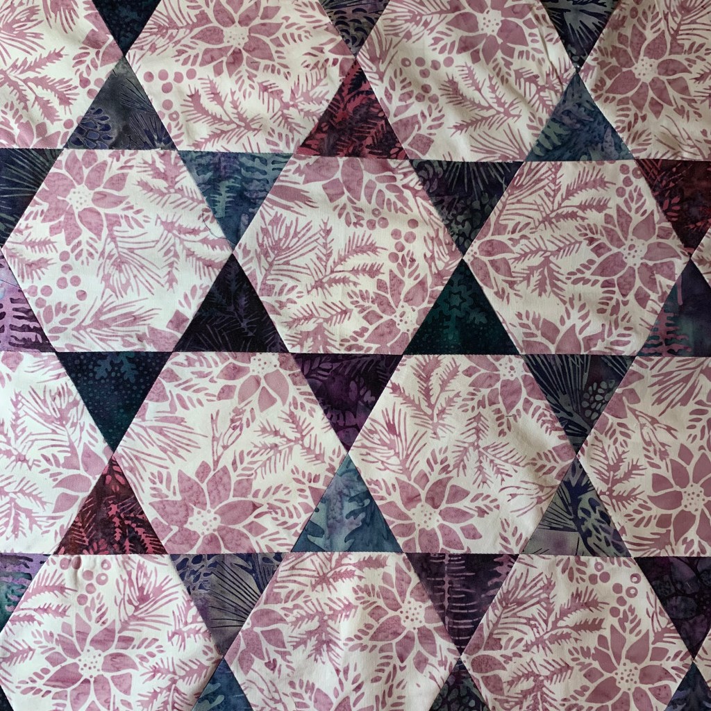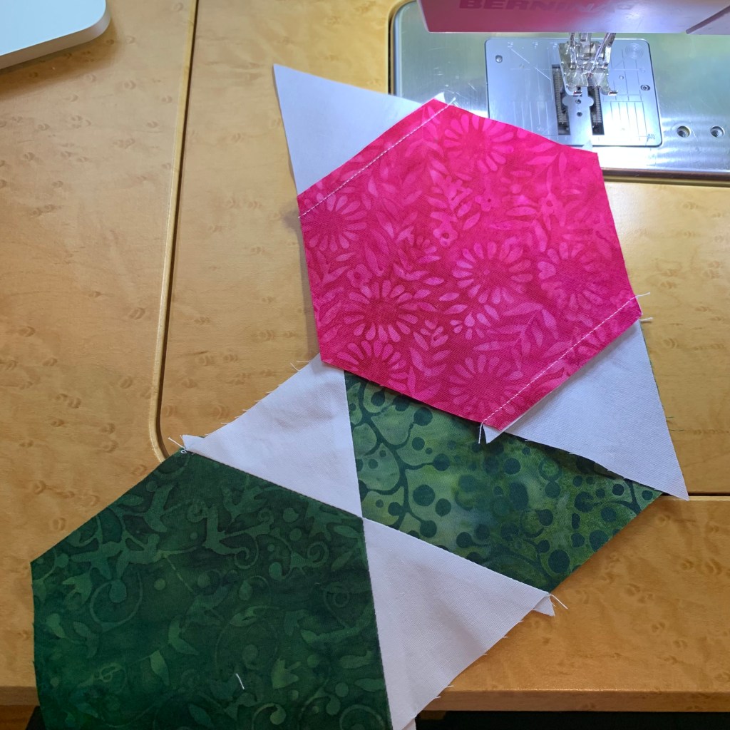 Next I used the Star 60 tool to cut out triangle to sew on the hexagons. This was similar to the quilt I did last June for our free theme.