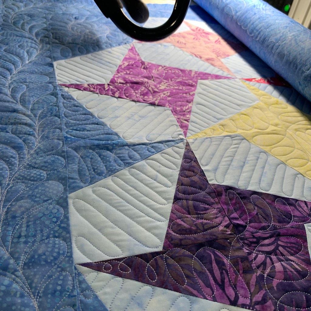 It was fun to quilt this on my long arm using Aurifil 40 weight thread from the Whale Shark collection.