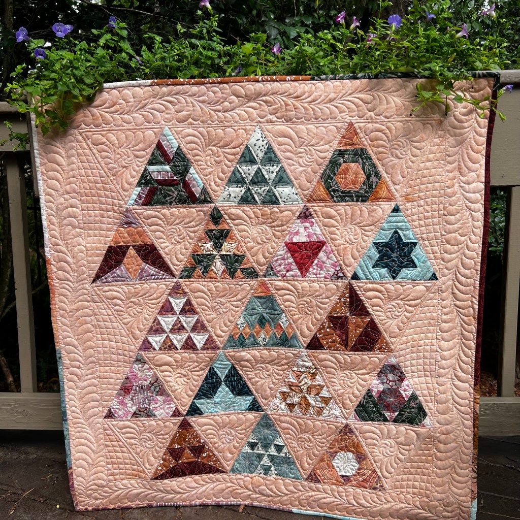 I love everything about quilting. I love the colors, the feel of the fabrics, the piecing, the quilting , and even putting on the binding! I free motion quilt using a Bernina 780, longarm quilt (free motion or ruler work), on a Prodigy , and hand quilt when I get a chance.