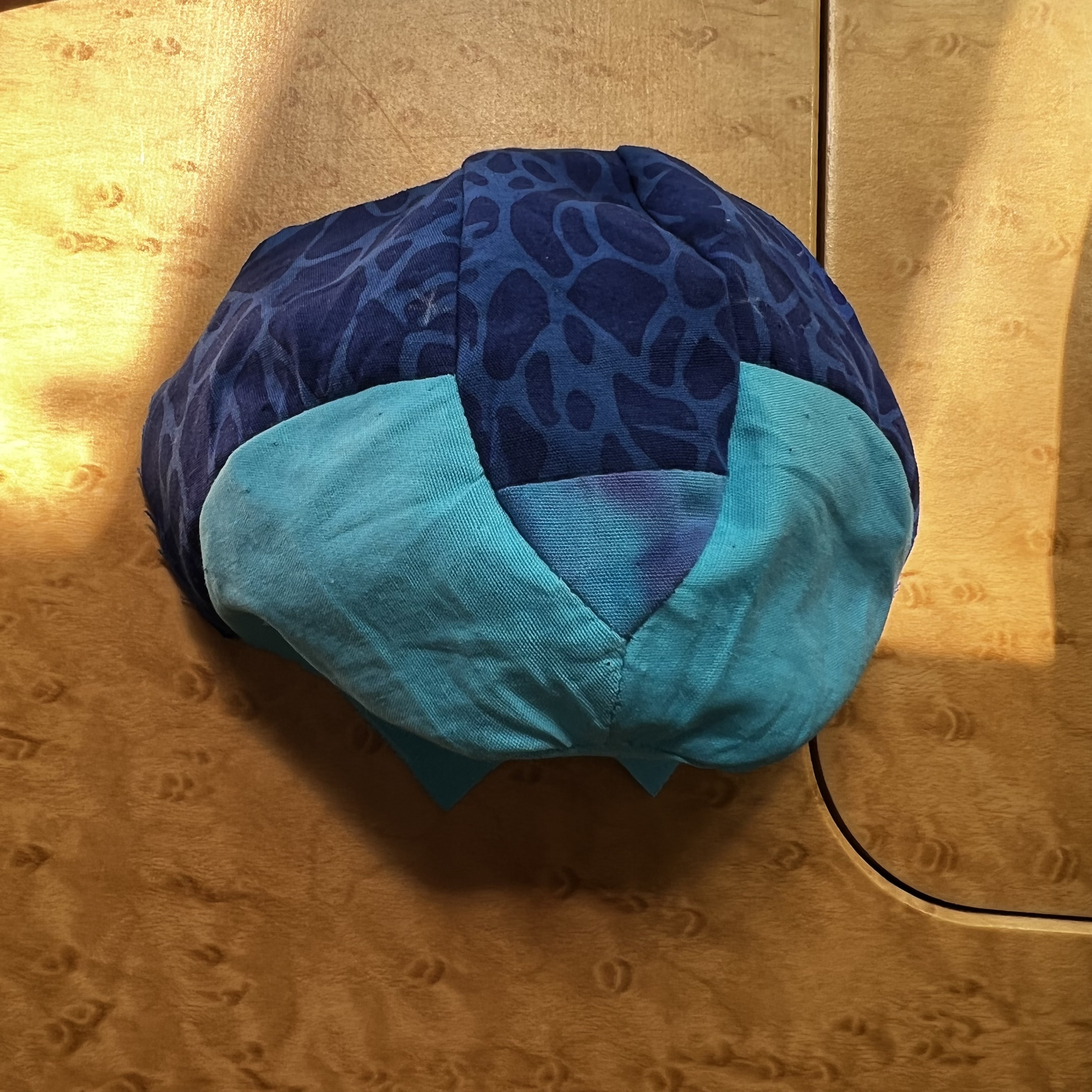 Let me introduce to you my Funky Friend, Larry Lion. I made him with these beautiful Island Batik foundation fabrics: Tanzanite, Branch-Blue, and Turquoise . I used a Schmetz Microtex Chrome needle and Aurifil 5005 and 2740 50 weight thread.