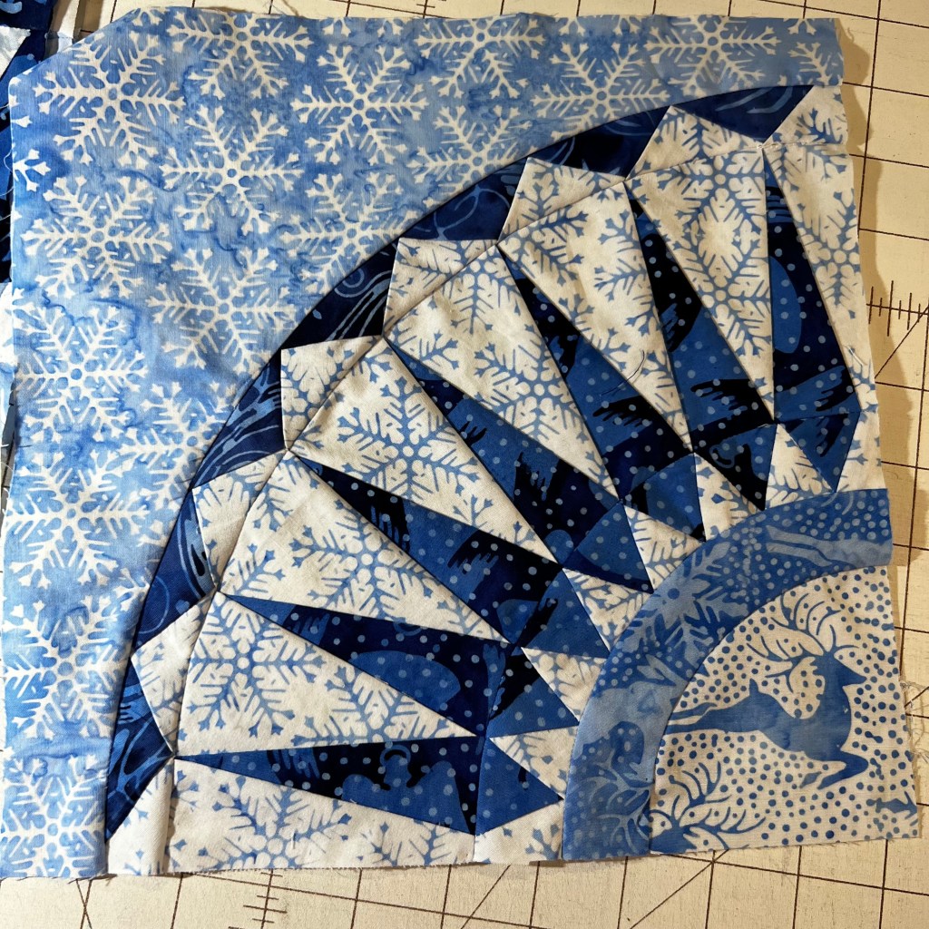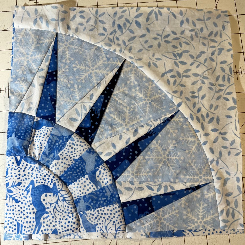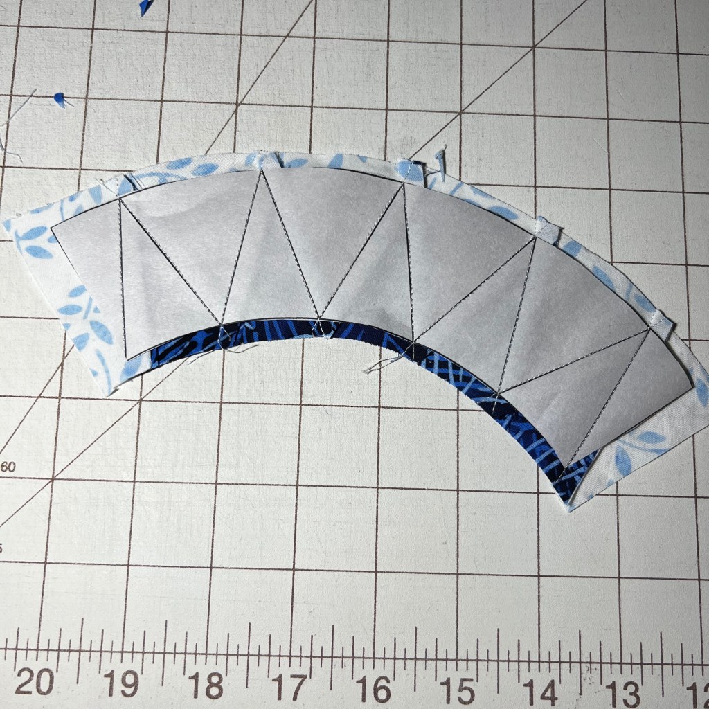 I paper pieced each arc. One of the tricks I have learned about this method is to leave a 1/2″ seam around your block instead of the needed 1/4″: it gives you a little wiggle room when you trim down your block.