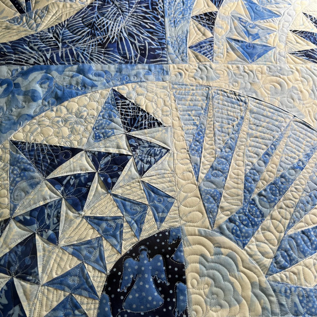 The fabric, needles, batting, and thread were all generously supplied to me by Island Batik, Schmetz, Hobbs, and Aurifil.