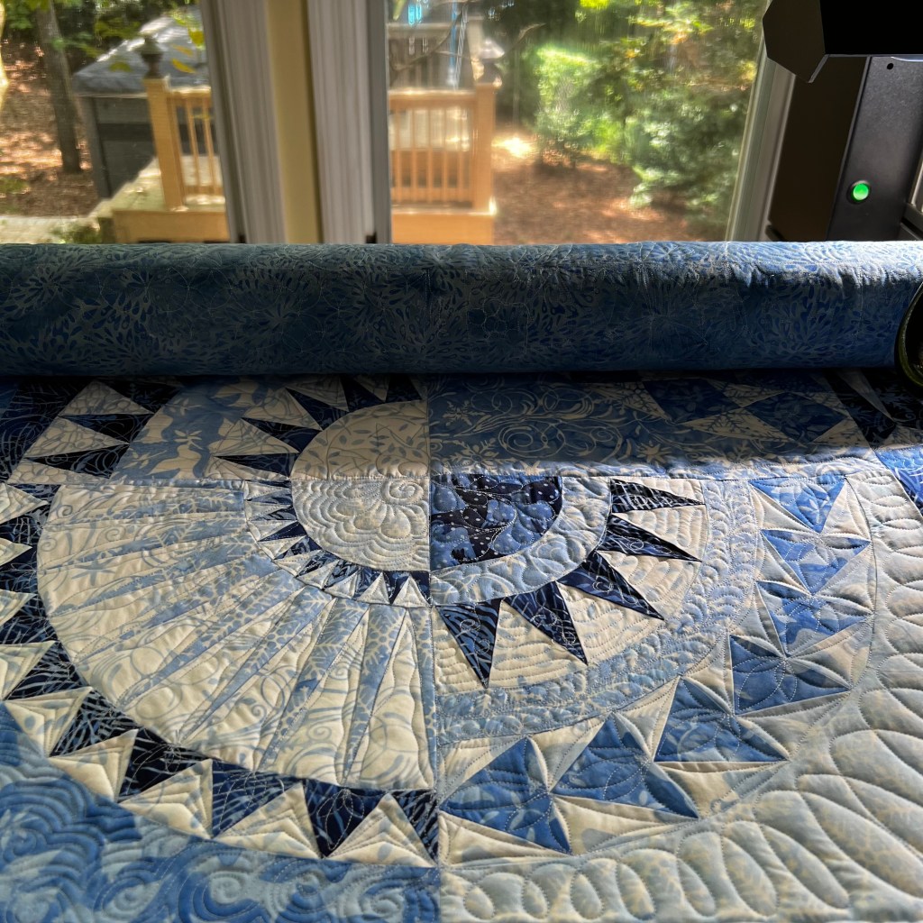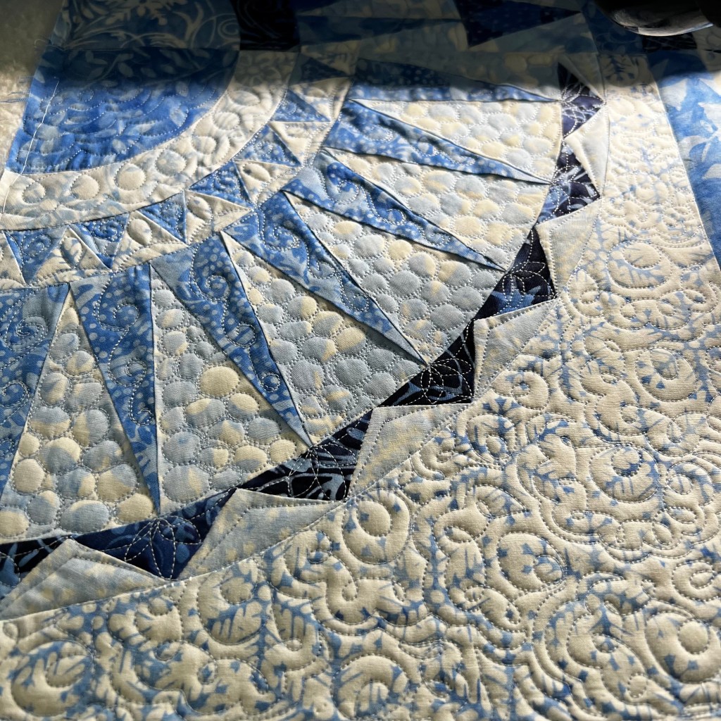 I love your quilt and especially the way you quilted it. That was a close one with the batting. I’m always sweating it out when I get that close. Pshew! Have a great day.