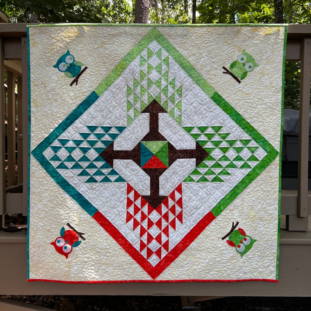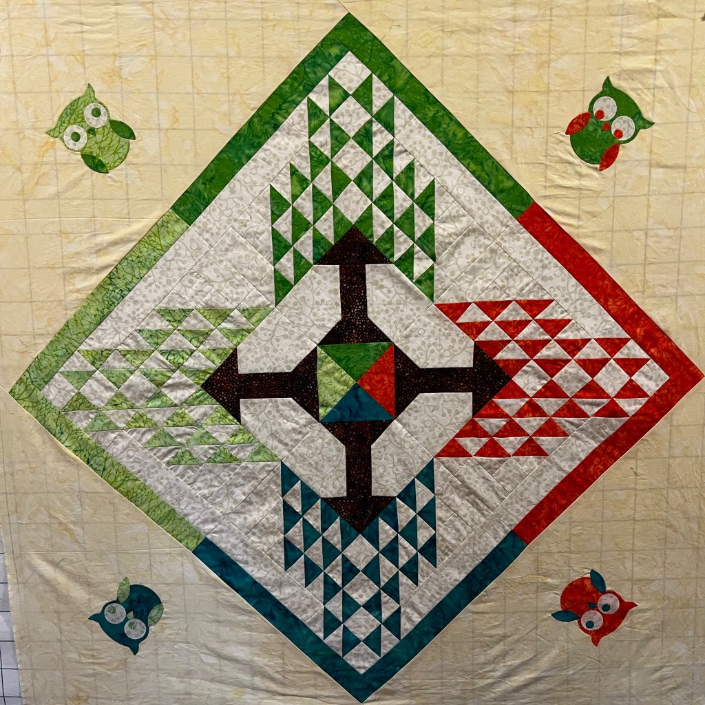 What a sweet quilt. I love how expressive the Owls look. I hope it brings comfort to the recipient. Have a great day.