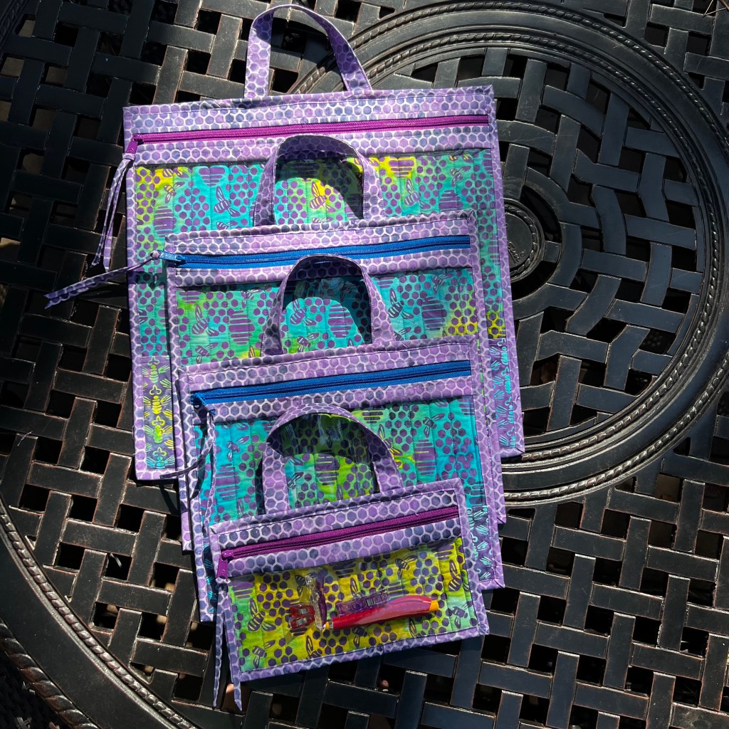 I chose to make Project Bags 2.0 which will help me to be organized when I am making my many projects: great for fabric and notions to stay with their project. I love that there are four different sizes to accommodate different storage needs. The front of the bags are clear so you can see just what you have stored in them.