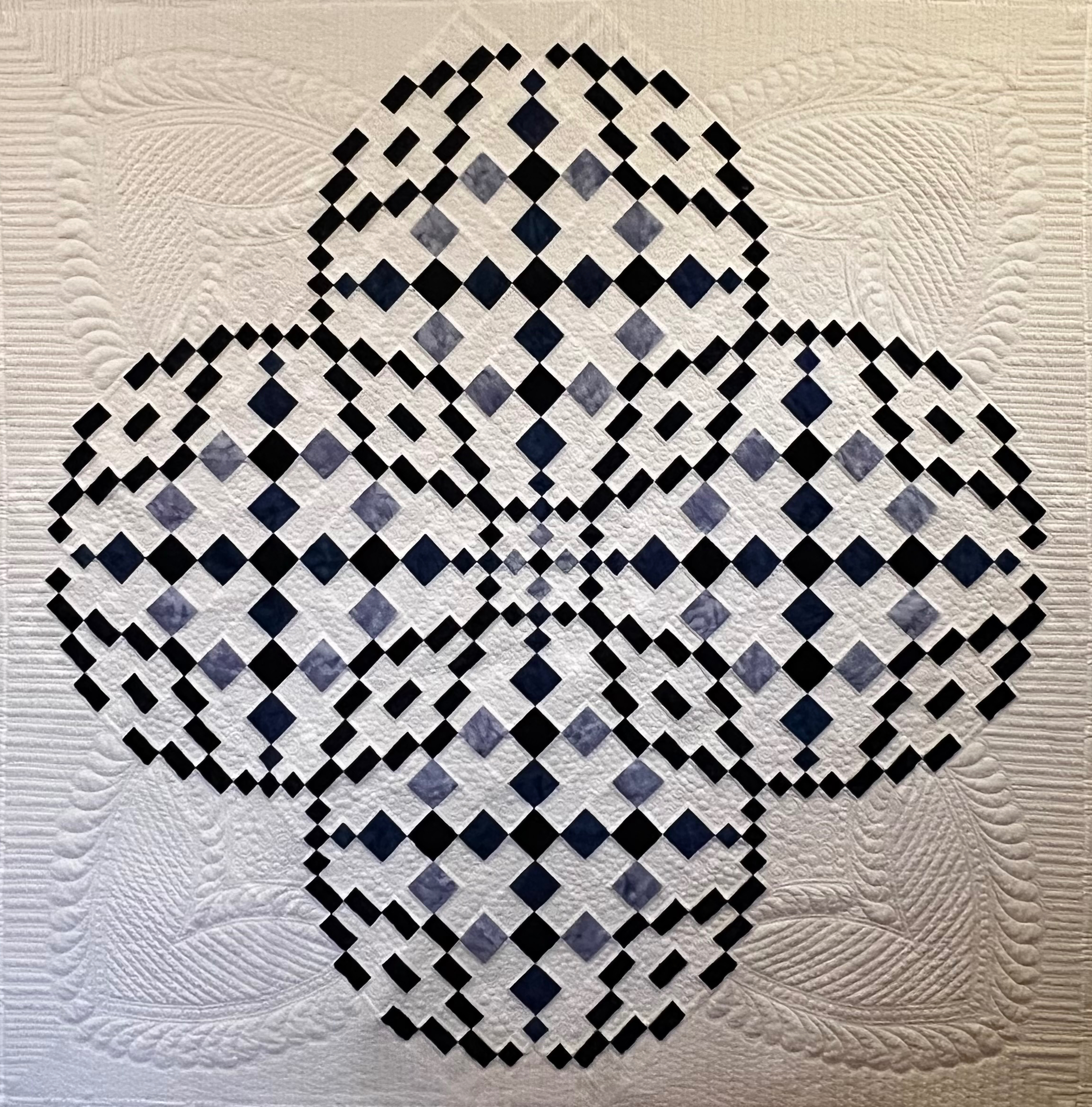 This geometric quilt is made by carefully choosing three different values of fabric on a light background. It is made with the Studio 180 Design Four Patch Square Up tool.